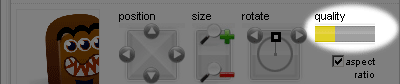 The quality meter gives an indication of how your image will be printed: green indicates that it will print well, yellow that it will print ok, while red that it will not print well.